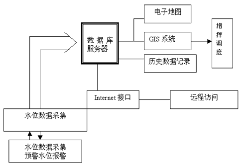 ÓÉϵͳ½á¹¹Í¼¿ÉÒÔ¿´³ö£¬ÏµÍ³ÊÇÒ»µäÐ͵Ľð×ÖËþÐͽṹ£¬Ë®Î»Êý¾ÝÐÅÏ¢µÄ´«ÊäͨµÀÔò·ÖΪÃ÷ÏÔµÄËļ¶¡£