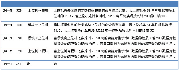 表2:TTL或RS232电平下J4各端子功能